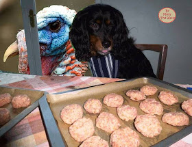 ReplyDeleteThis recipe looks very yummy and I will definitely have to make it for the Beaglebratz - especially since it looks a lot easier than the turkey loaf I RARELY make for them. Loved the evil eye from Tom Turkey.